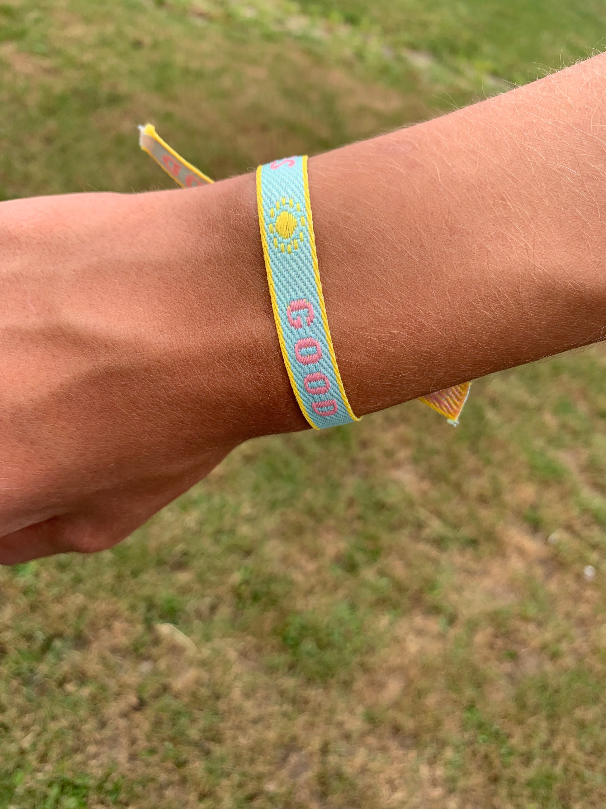 Le bracelet "GOOD VIBES" est un bracelet ruban jaune et bleu mixte qui peut se porter chez les hommes comme chez les femmes. Vous pouvez ainsi le porter tout le temps même à la piscine et à la mer.
