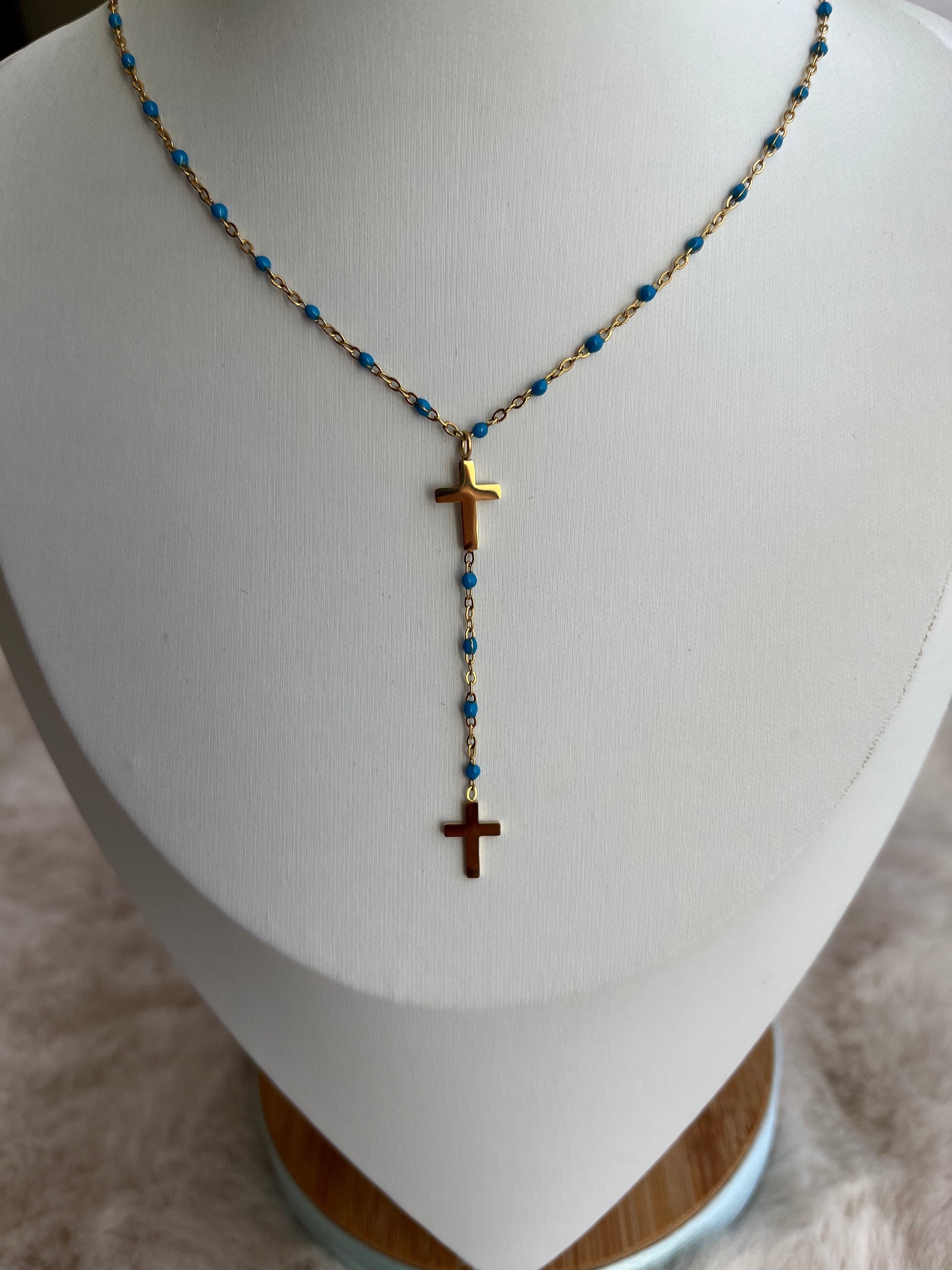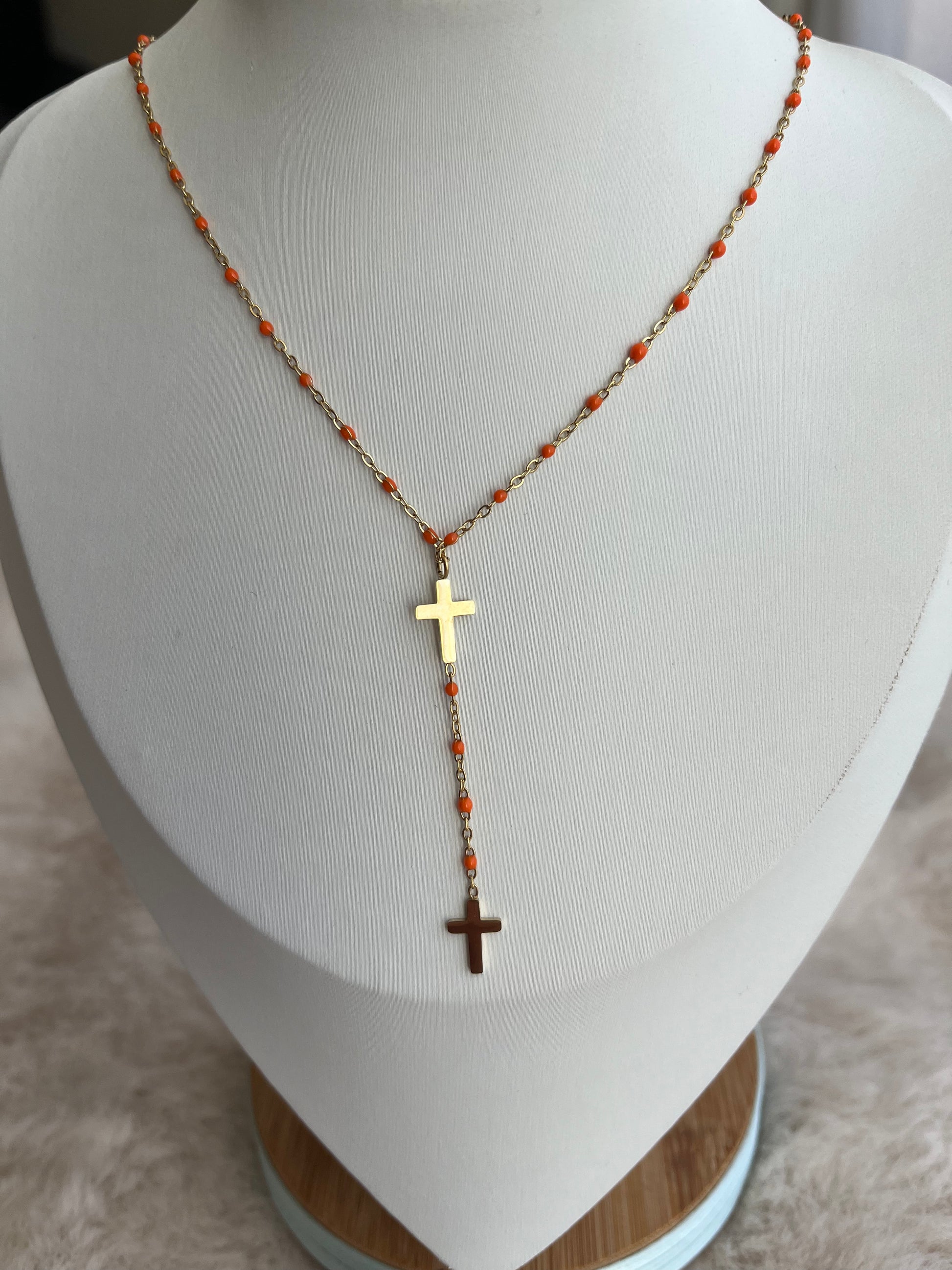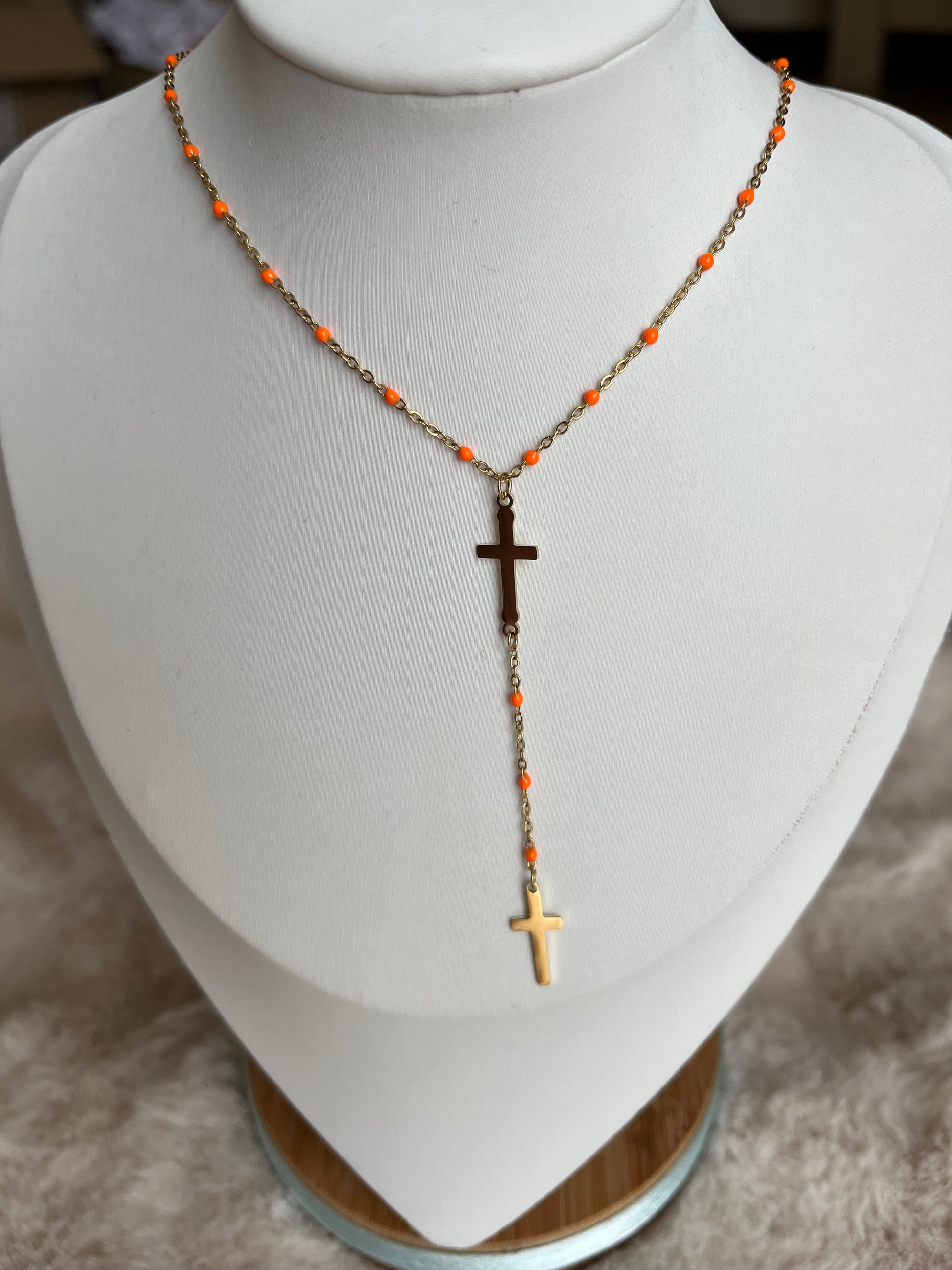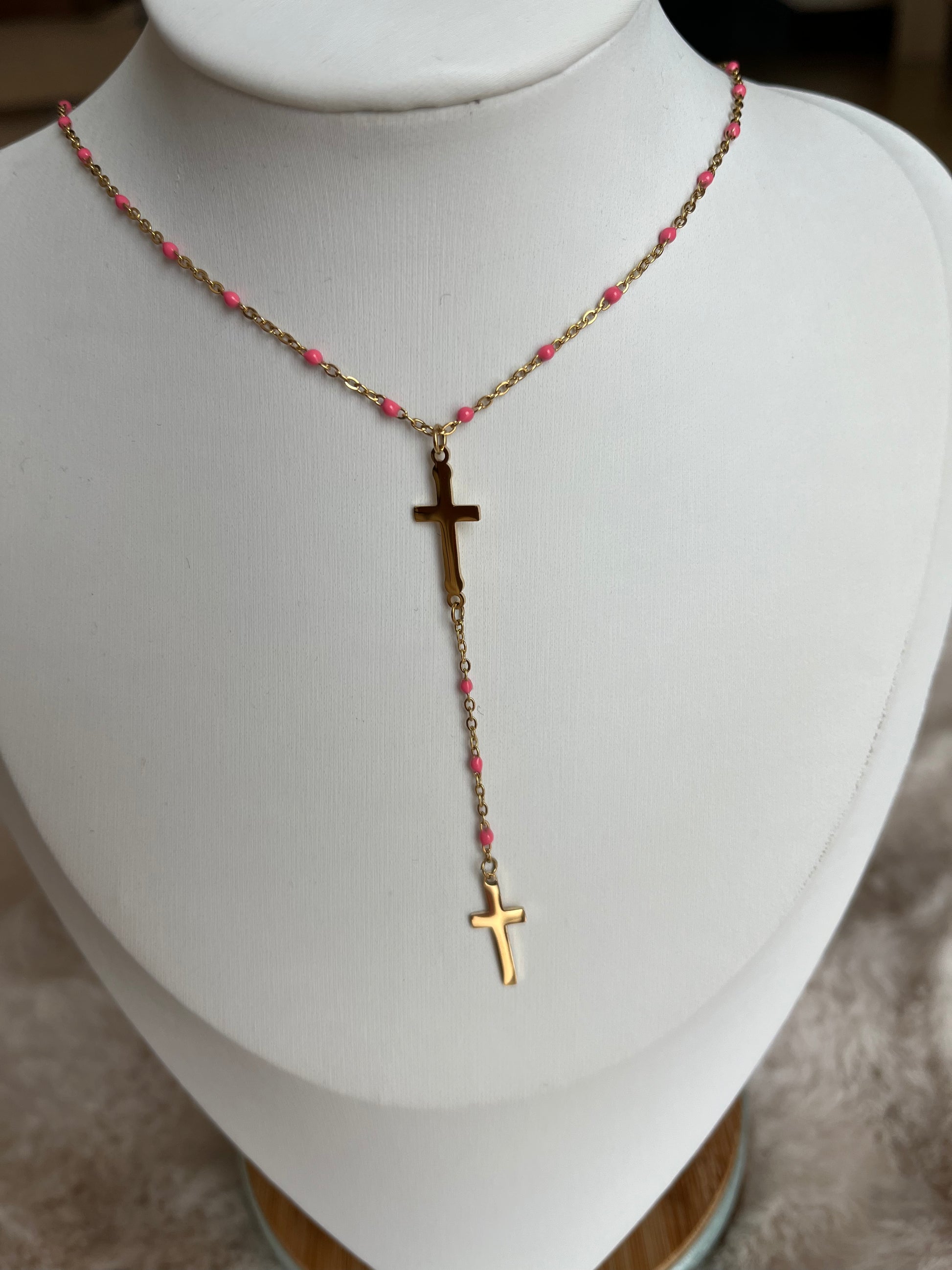 🎀 Collier Y croix en acier inoxydable qui ne rouille pas.