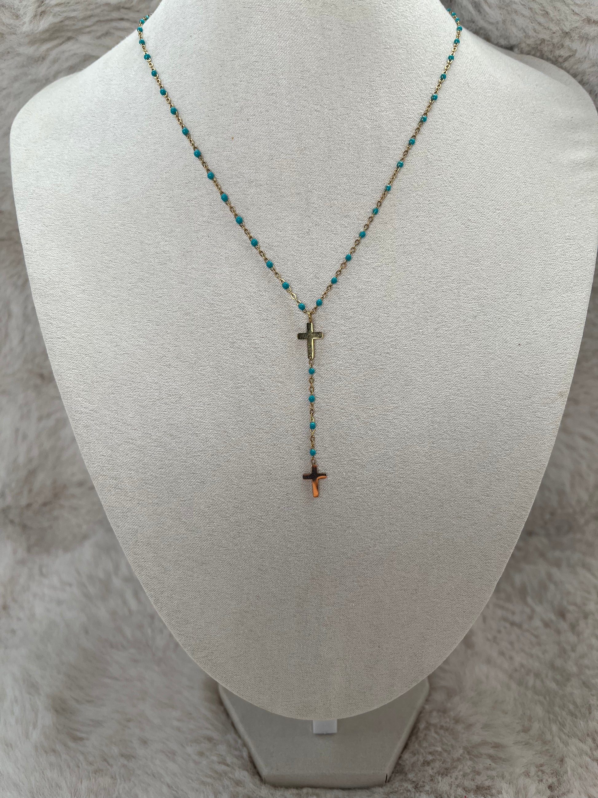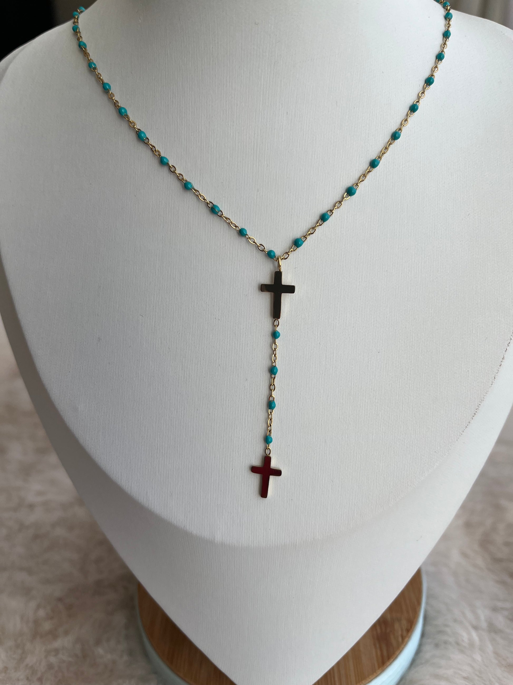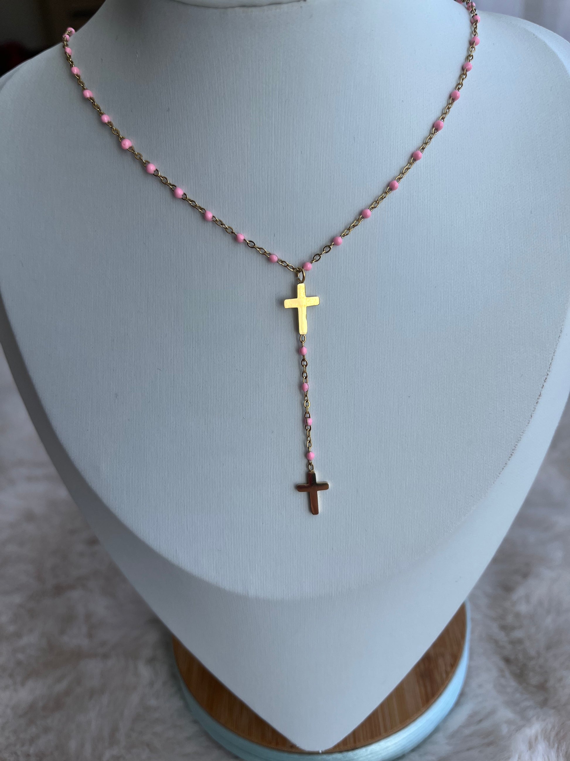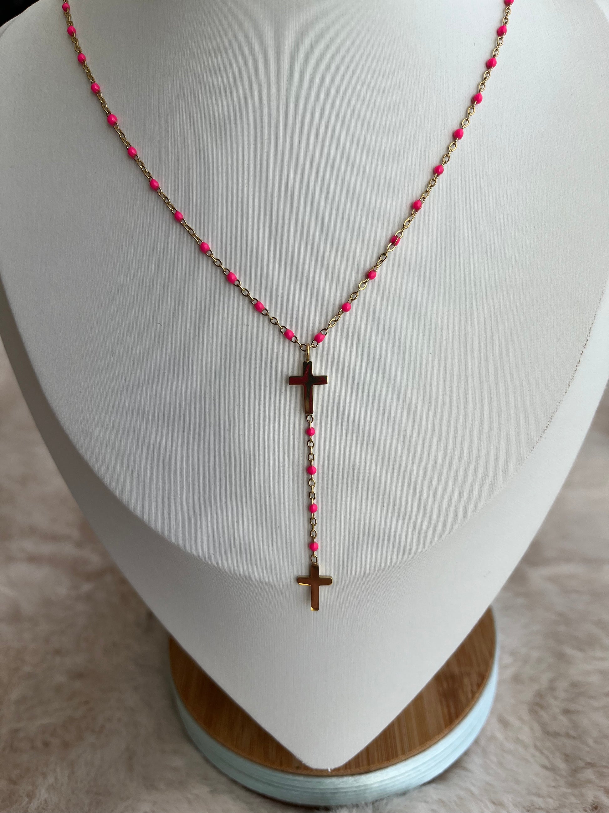 🎀 Collier Y croix en acier inoxydable qui ne rouille pas.