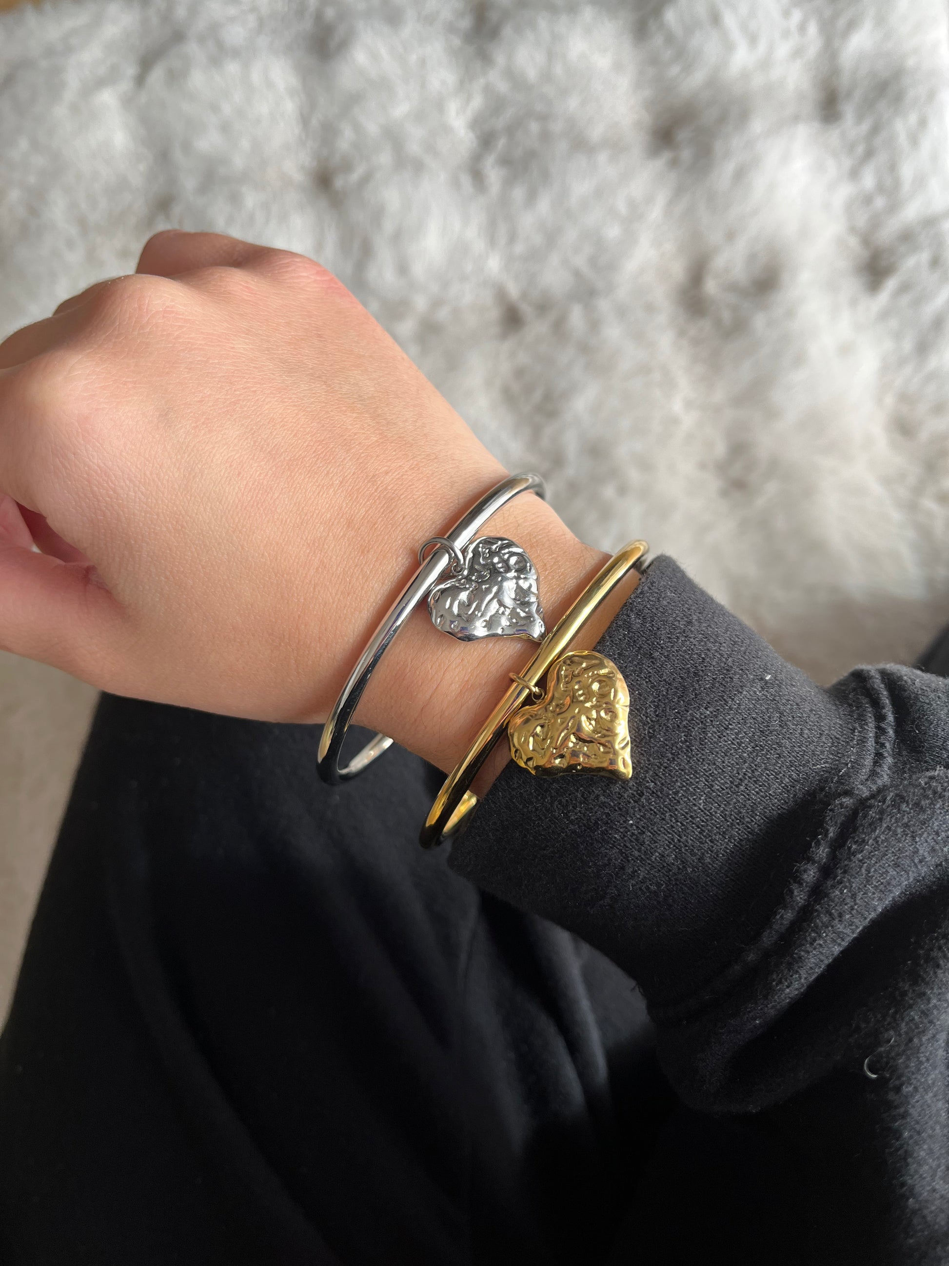 🎀 Jonc en acier inoxydable qui ne rouille pas avec les pendentifs coeur martelé