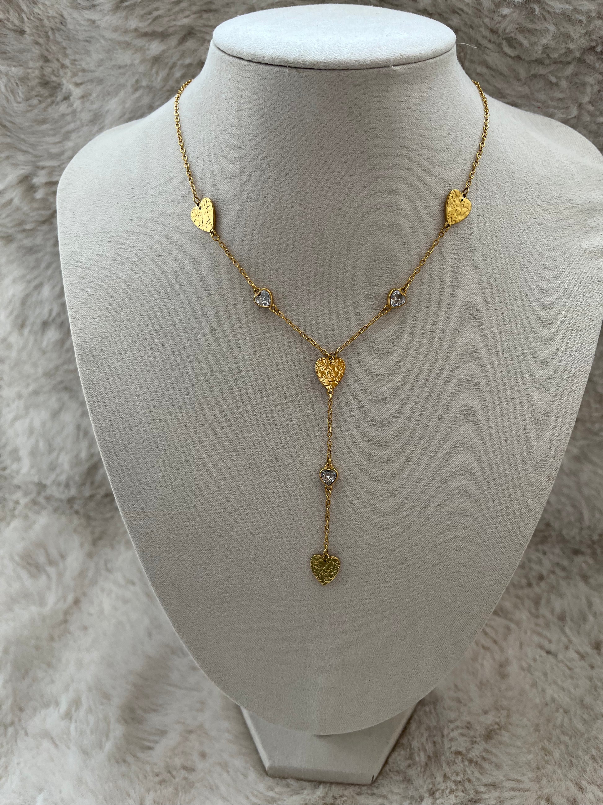 🎀 Sautoir Y en acier inoxydable qui ne rouille pas avec les pendentifs coeur